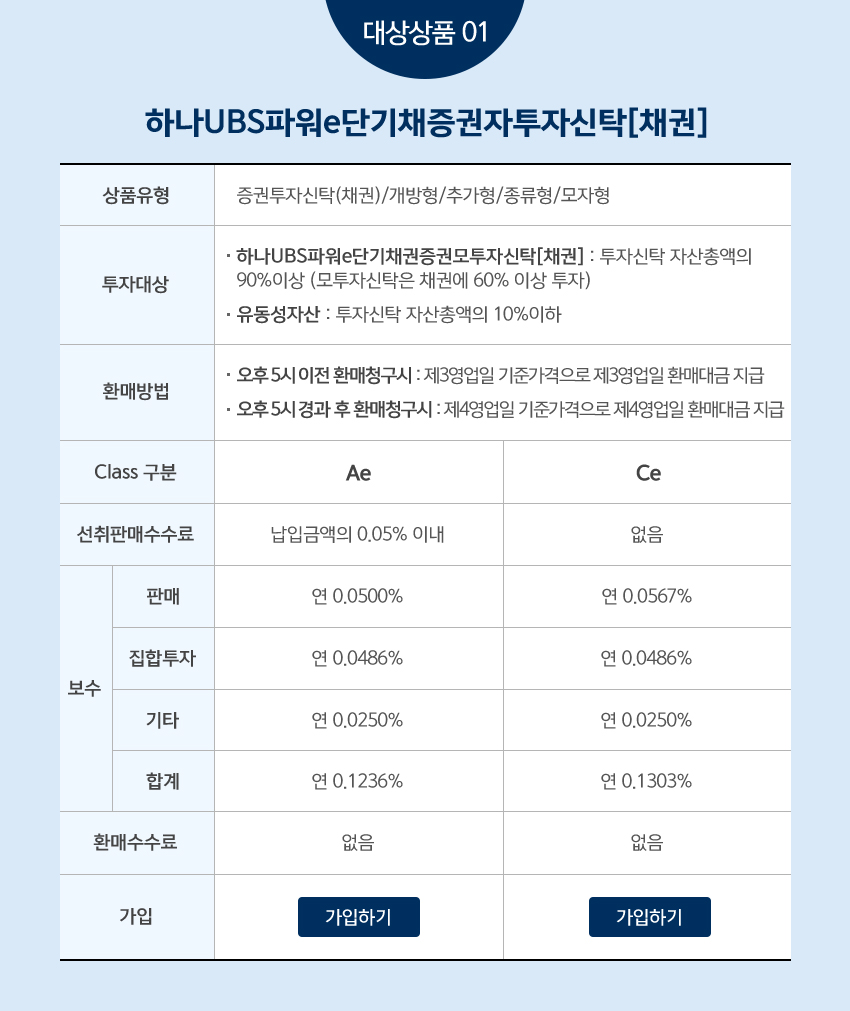 하나UBS파워e단기채증권자투자신탁[채권] 상세
