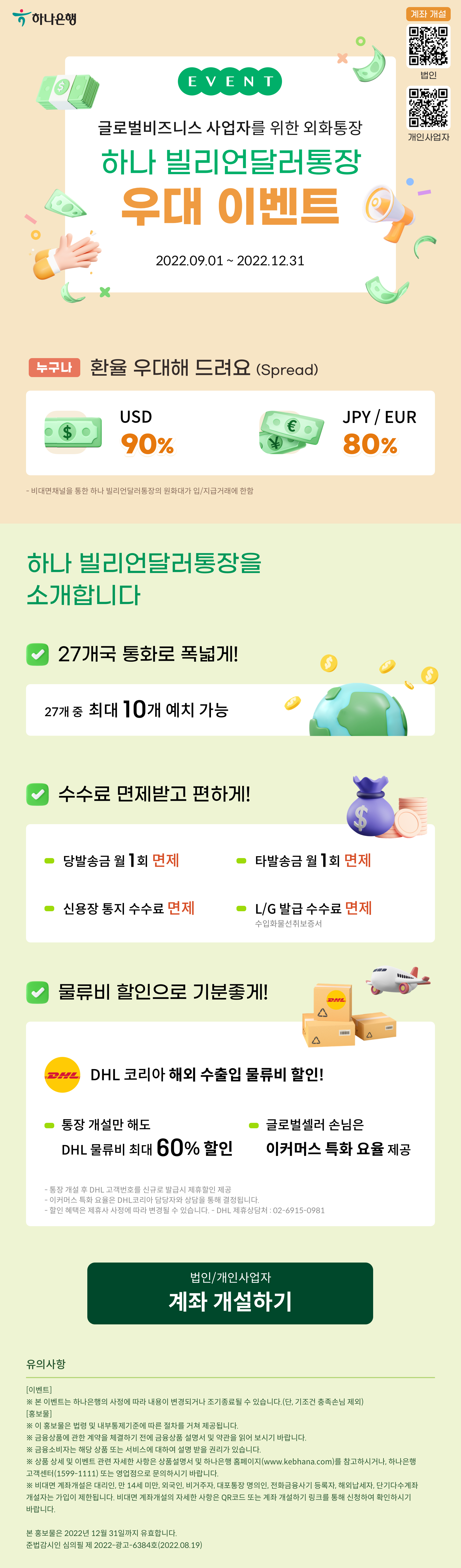 글로벌비즈니스 사업자를 위한 외화통장하나 빌리언달러통장 우대 이벤트